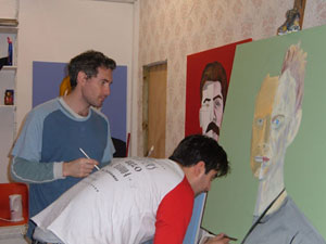 The Monkey in the Box Company is a crude-fine art project by Jay Rechsetiner AKA Tobleroni and his good friend Victor Silveira AKA Sardine.Sardine & Tobleroni basically create artwork collaboratively in the manner of artists such as Fischli and Weiss or Gilbert and George do. Every piece they create is divided into two halves. The left one is Tobleroni's side and the right one Sardine's.