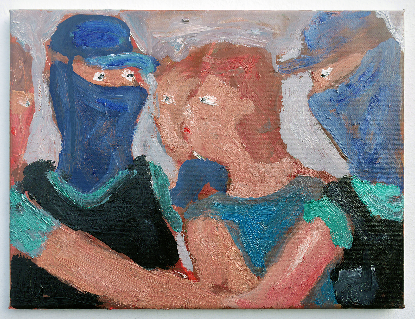 All paintings are the same size: 22.7cm x 30.5cm - roughly the dimensions of a laptop screen. The faux-naïf style is intentional: crude, ugly, and fast. It reflects the unease, chaos, and moral ambiguity embedded in the subject matter.